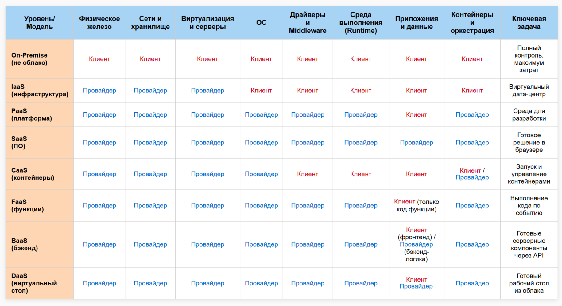 Провайдер: обеспечивает работу ОС и серверного ПО, своевременные обновления, функционирование хранилищ и всей лежащей в основе инфраструктуры.