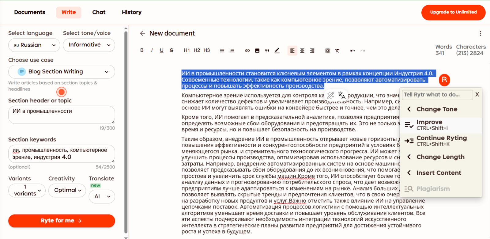 Rytr — ИИ-сервис для генерации текстов, в основе которого лежат модели OpenAI на основе GPT-3.