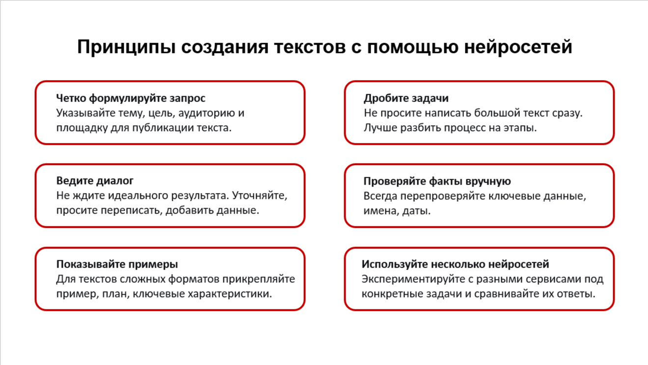 С задачами заполнения карточек товаров, генерации идей, планов и заголовков ИИ справляется блестяще. Но в части создания текста с глубокой экспертизой, опорой на личный опыт и примерами нейросеть и ИИ-сервисы остаются лишь инструментом-помощником в руках человека, с которым необходимо научиться работать.