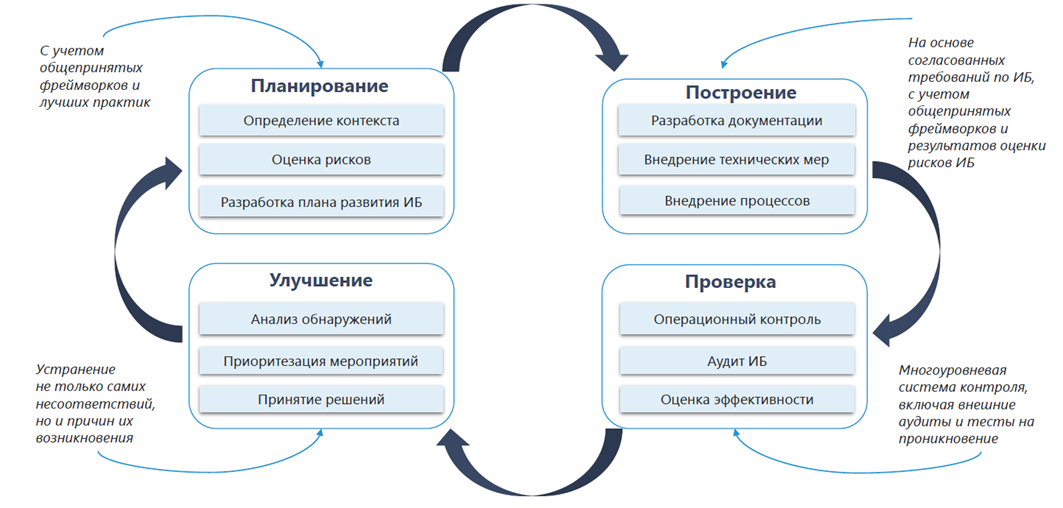 Общепризнанный эталон построения СМИБ – стандарт ISO/IEC 27001, обеспечивающий риск-ориентированный подход. Именно в рамках данного стандарта эксперты «Софтлайн Решения» разрабатывают СМИБ для заказчиков.